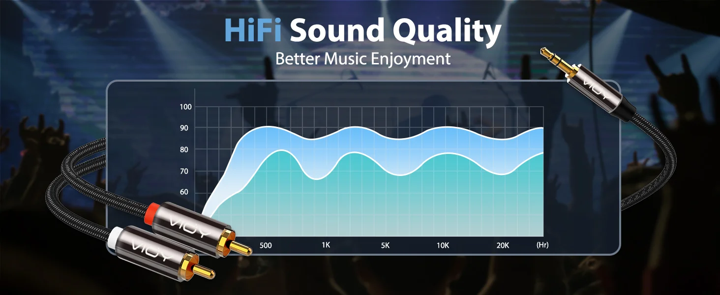 ⭐Clear Stereo Sound: VIOY RCA to aux stereo audio cable uses a dual shielding design, ensuring speakers were no white noise or any other interference coming through the RCA to 3.5mm. Gold Plated connectors provide maximum conductivity and pure copper core provides optimal stereo audio transmission, reduces the RF, EM and ground loop interference.